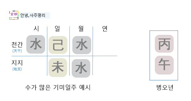 수 기운이 많은 기미일주는 병오년에 유리합니다.