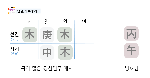 (가) 목 기운이 많은 경신일주 병오년 운세
