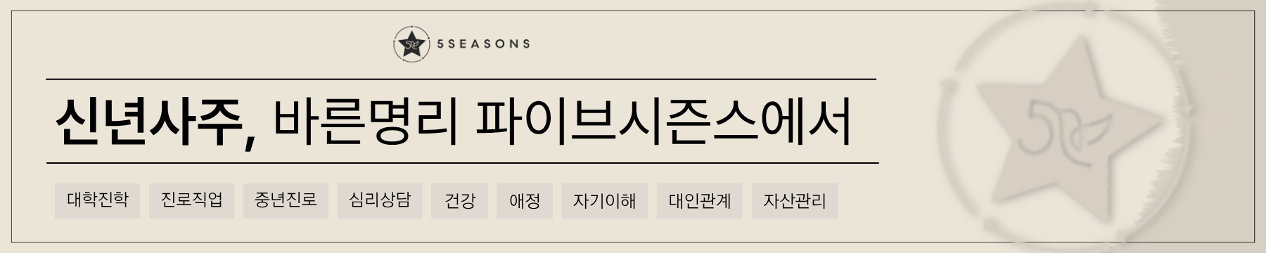 인시일수론으로 바뀐 내 사주 상담은 파이브시즌스 상담사와 함께하세요.