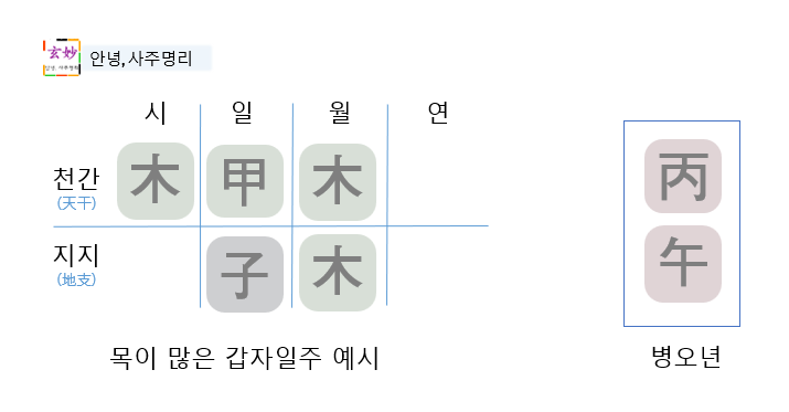 (가) 목 기운이 많은 갑자일주 병오년 운세