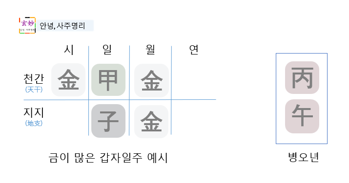 (라) 금 기운이 많은 갑자일주 병오년 운세