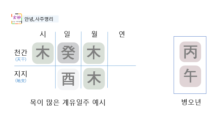 (가) 목 기운이 많은 계유일주 병오년 운세