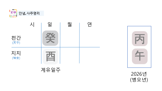 병오년(2026년)에 계유일주는 어떤 한 해를 보내게 될 지, 계유일주의 병오년(2026년) 운세에 대해 알아보겠습니다.