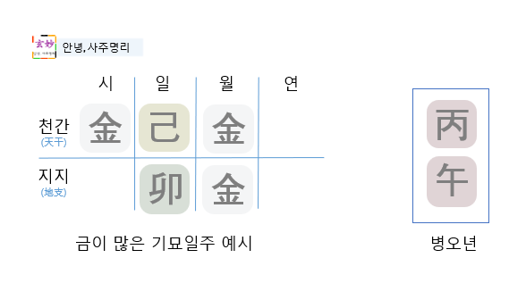 금이 많은 기묘일주는 병오년이 대체로 유리합니다.