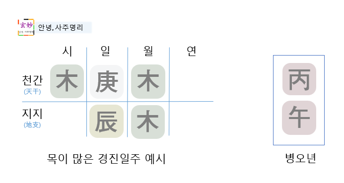 (가) 목 기운이 많은 경진일주 병오년 운세