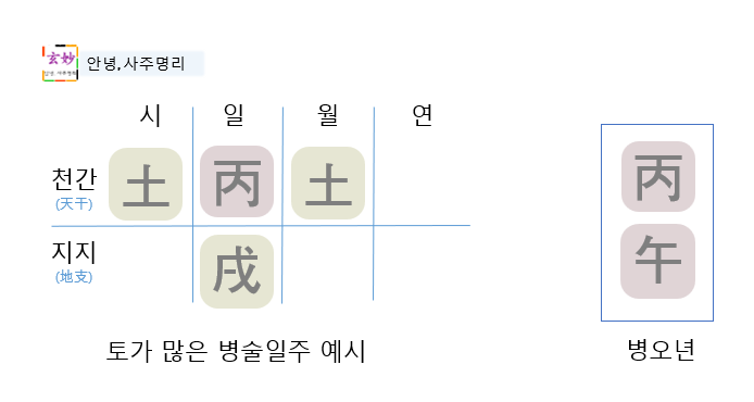 이에 더해 사주에 추가적으로 토기운이 많이 있다면 토기운이 강한 사주의 유형이 됩니다.