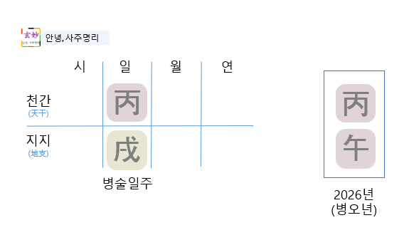 병오년(2026년)에 병술일주는 어떤 한 해를 보내게 될 지, 병술일주의 병오년(2026년) 운세에 대해 알아보겠습니다.