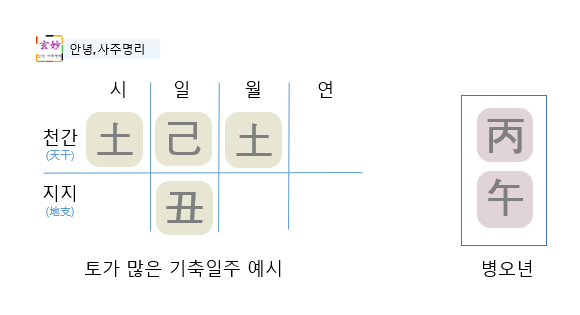 조심해야 할 상황으로는, 사주원국에 토 기운이 더 있는 경우입니다.
