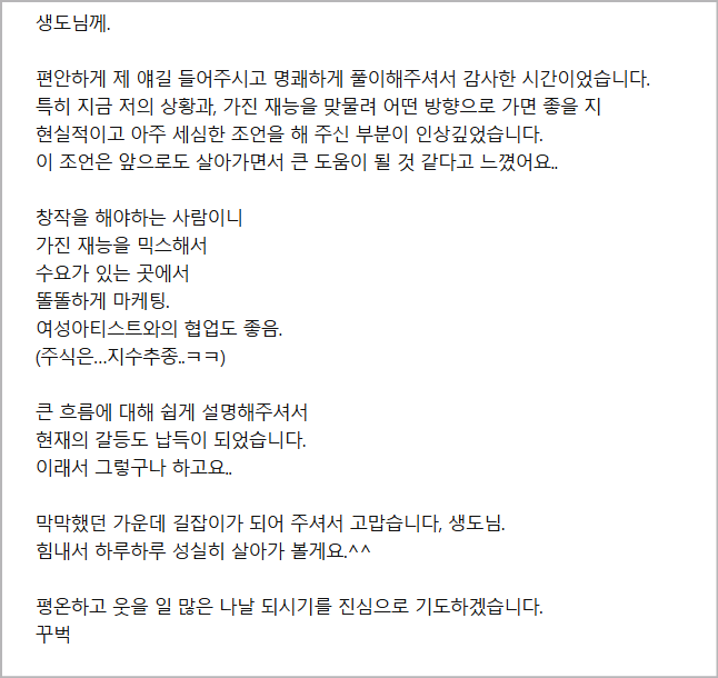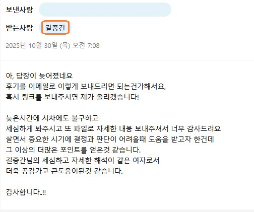 후기에 담긴 따뜻한 마음으로 인해 구독자분들의 하루가 환히 밝아지기를 바랍니다.