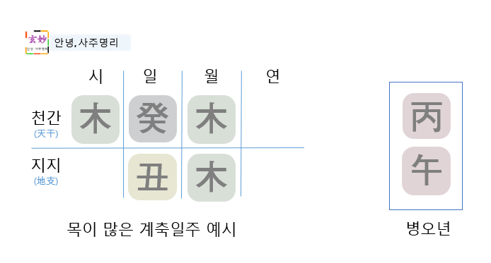 (가) 목 기운이 많은 계축일주 병오년 운세