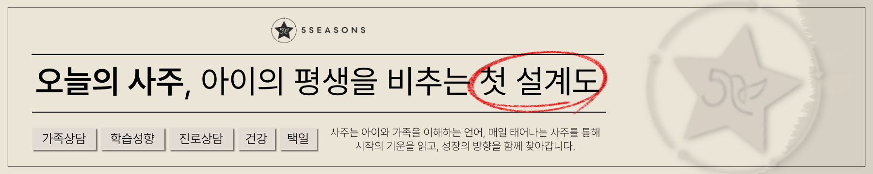 인시일수론으로 바뀐 내 사주 상담은 파이브시즌스 상담사와 함께하세요.