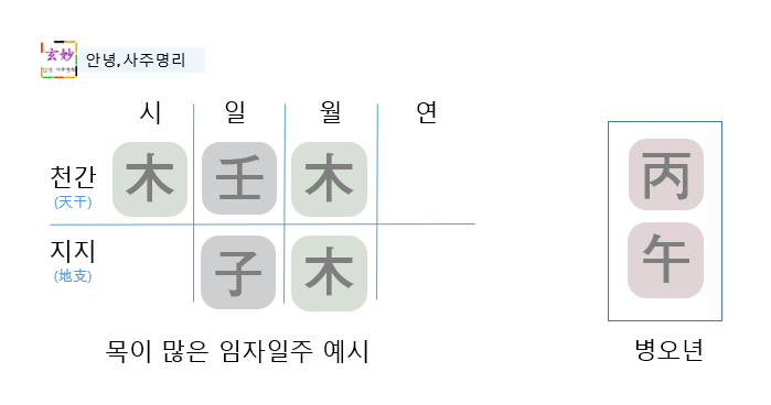 (가) 목 기운이 많은 임자일주 병오년 운세