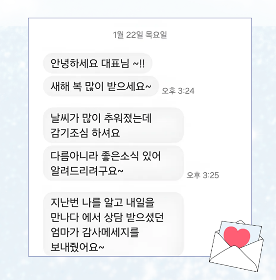 그때 상담을 받았던 분께서 최근에 후기를 보내주셔서 공유합니다.