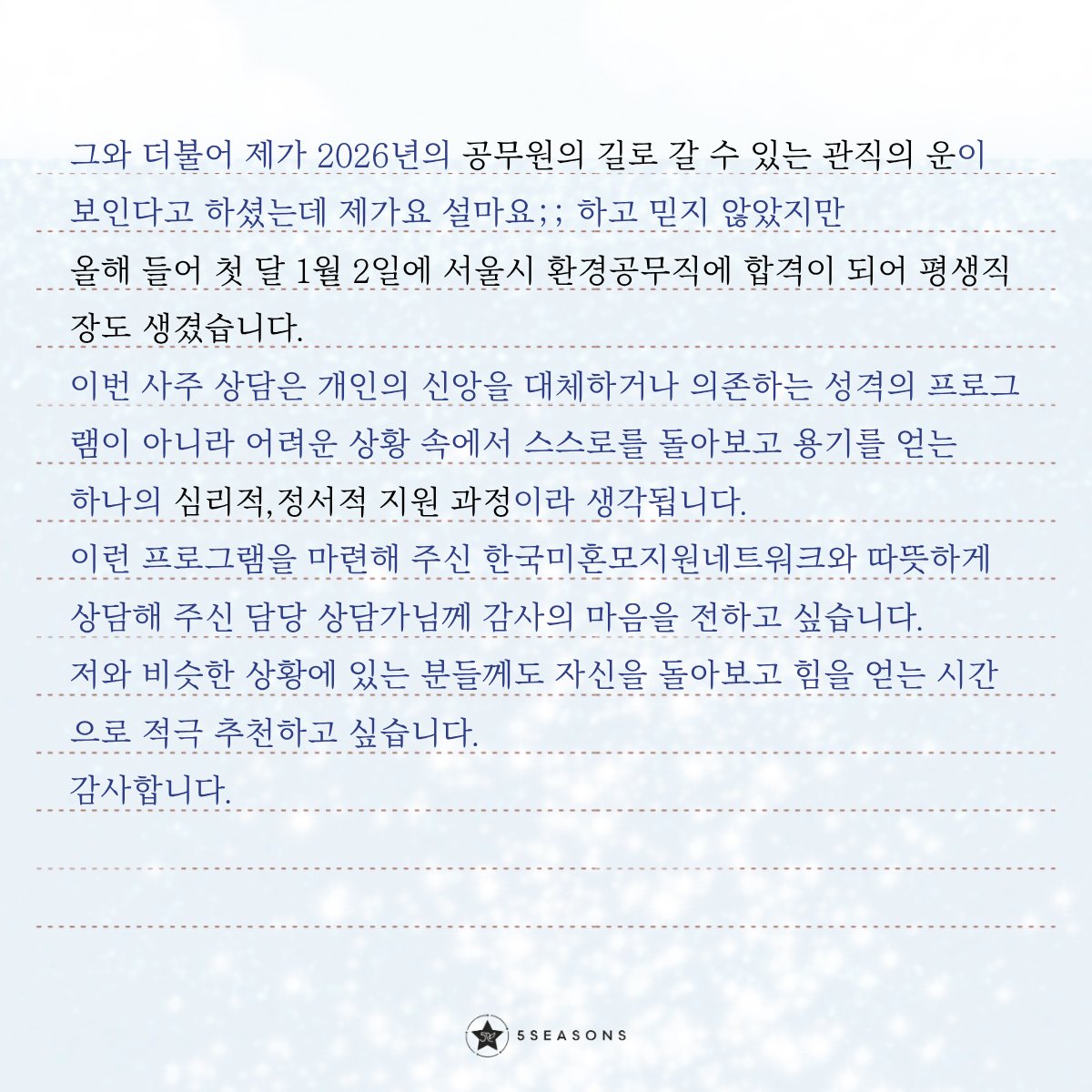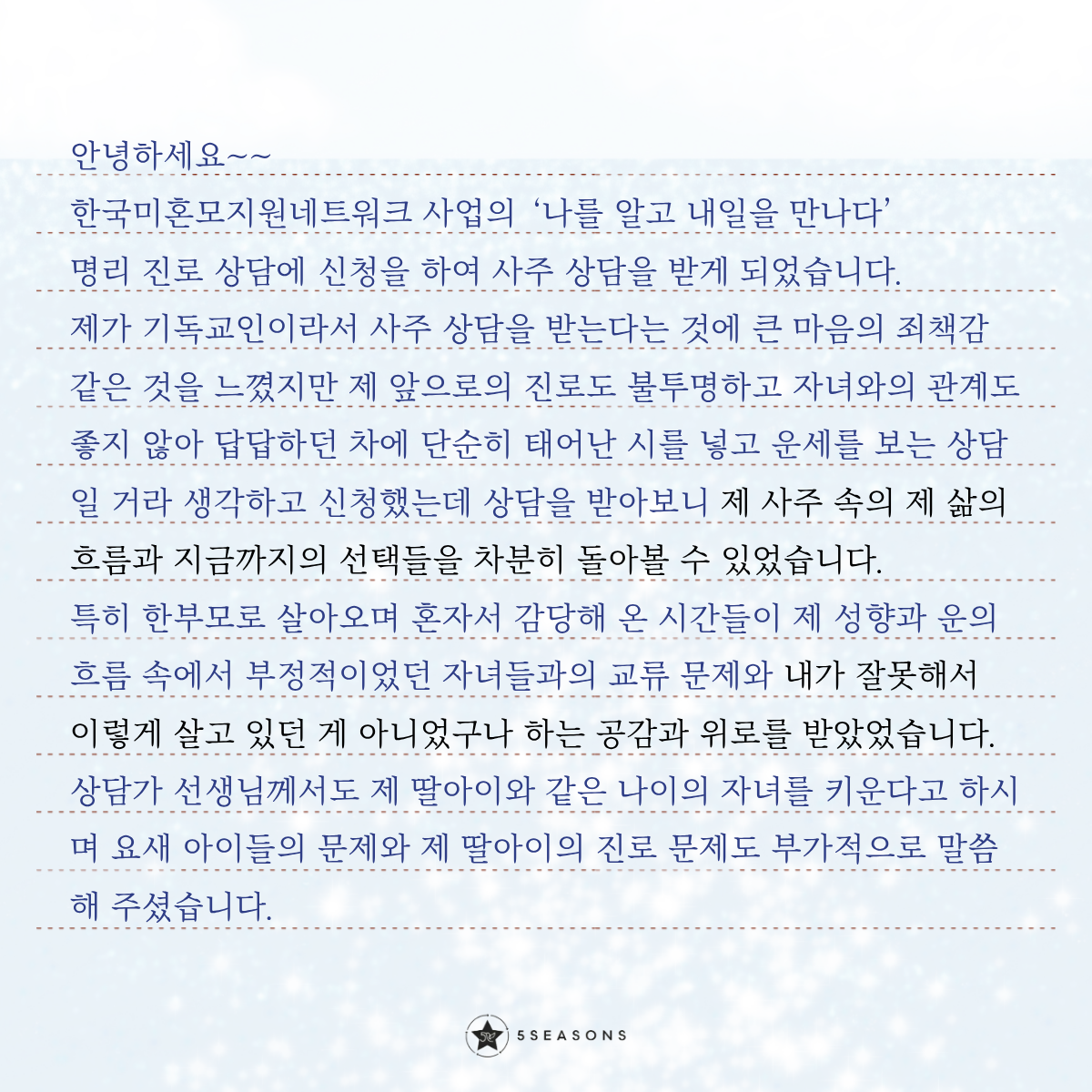 명리상담센터 파이브시즌스가 닿을 수 있기를.