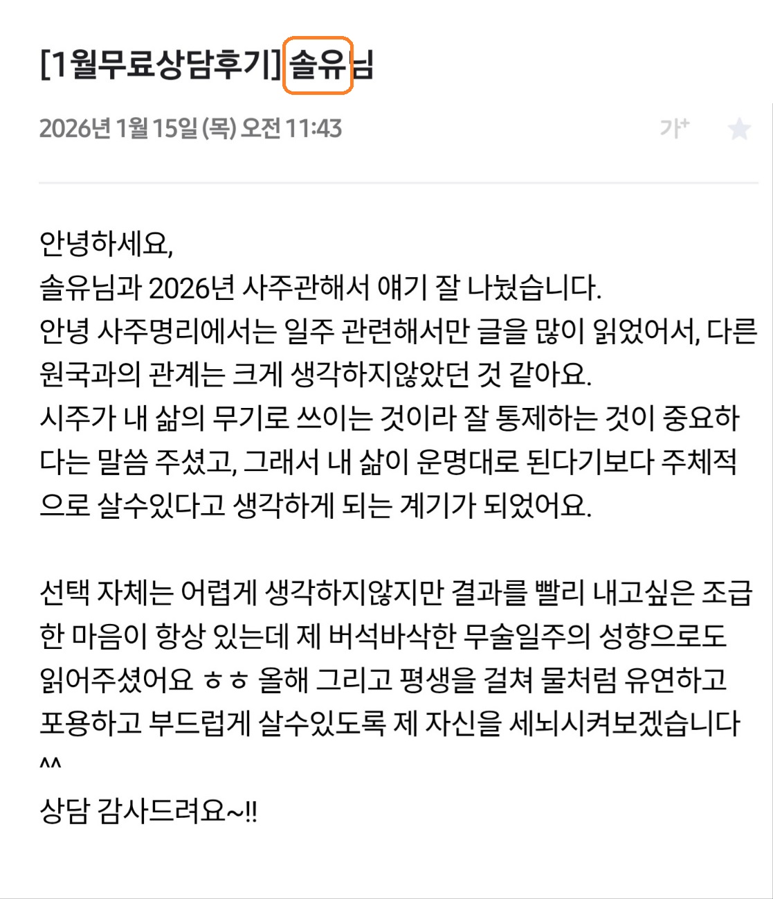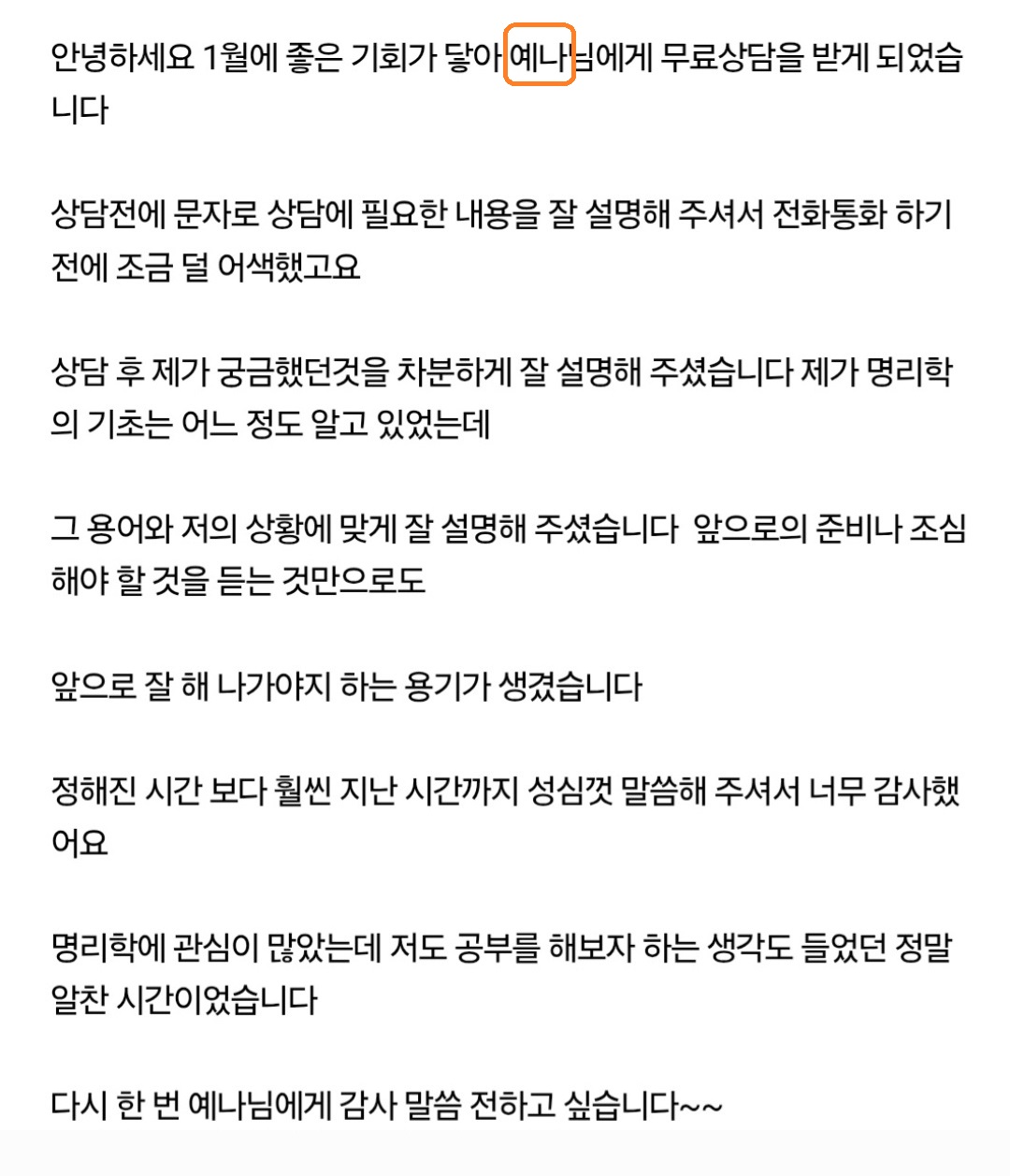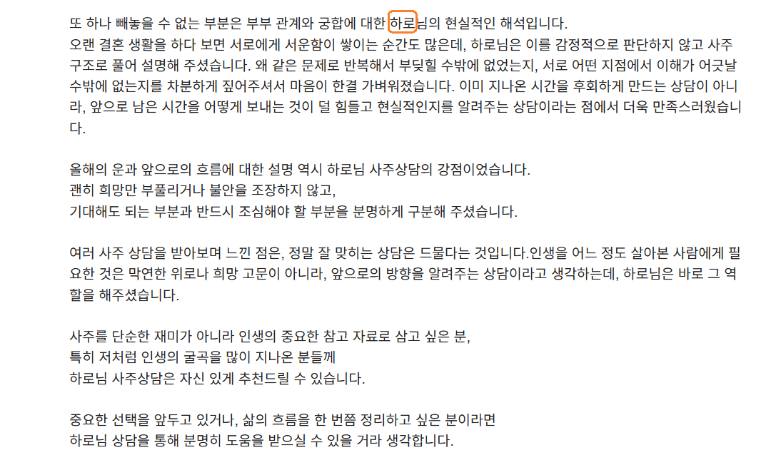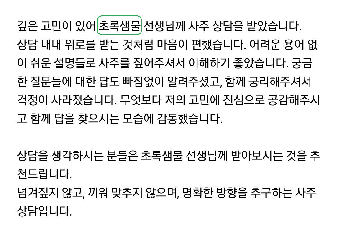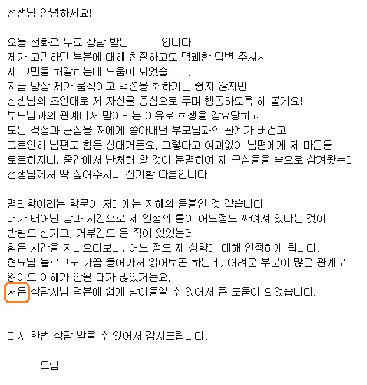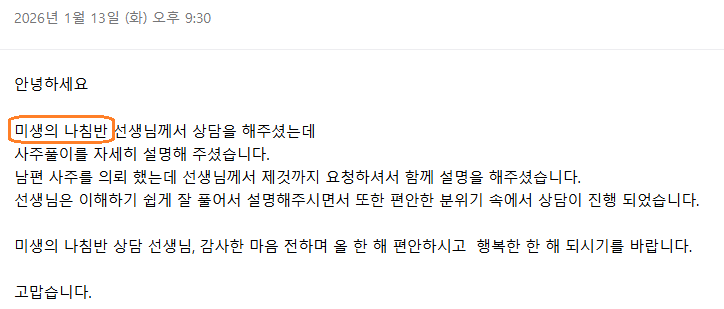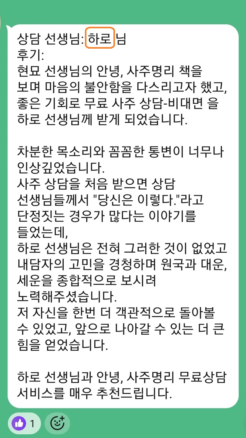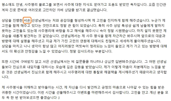 안녕 사주명리 1월 무료 상담 후기