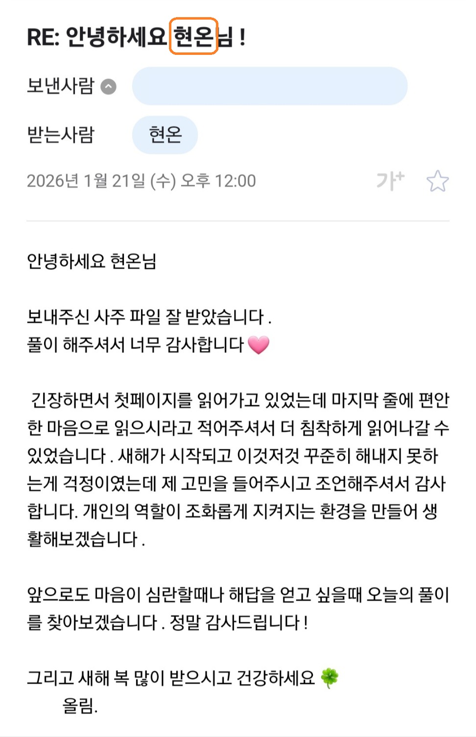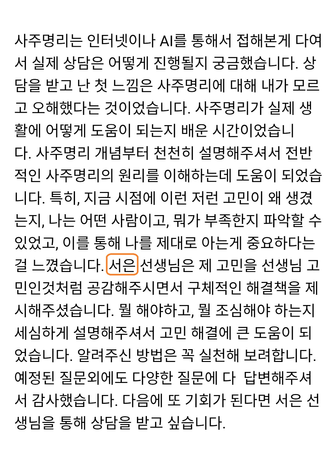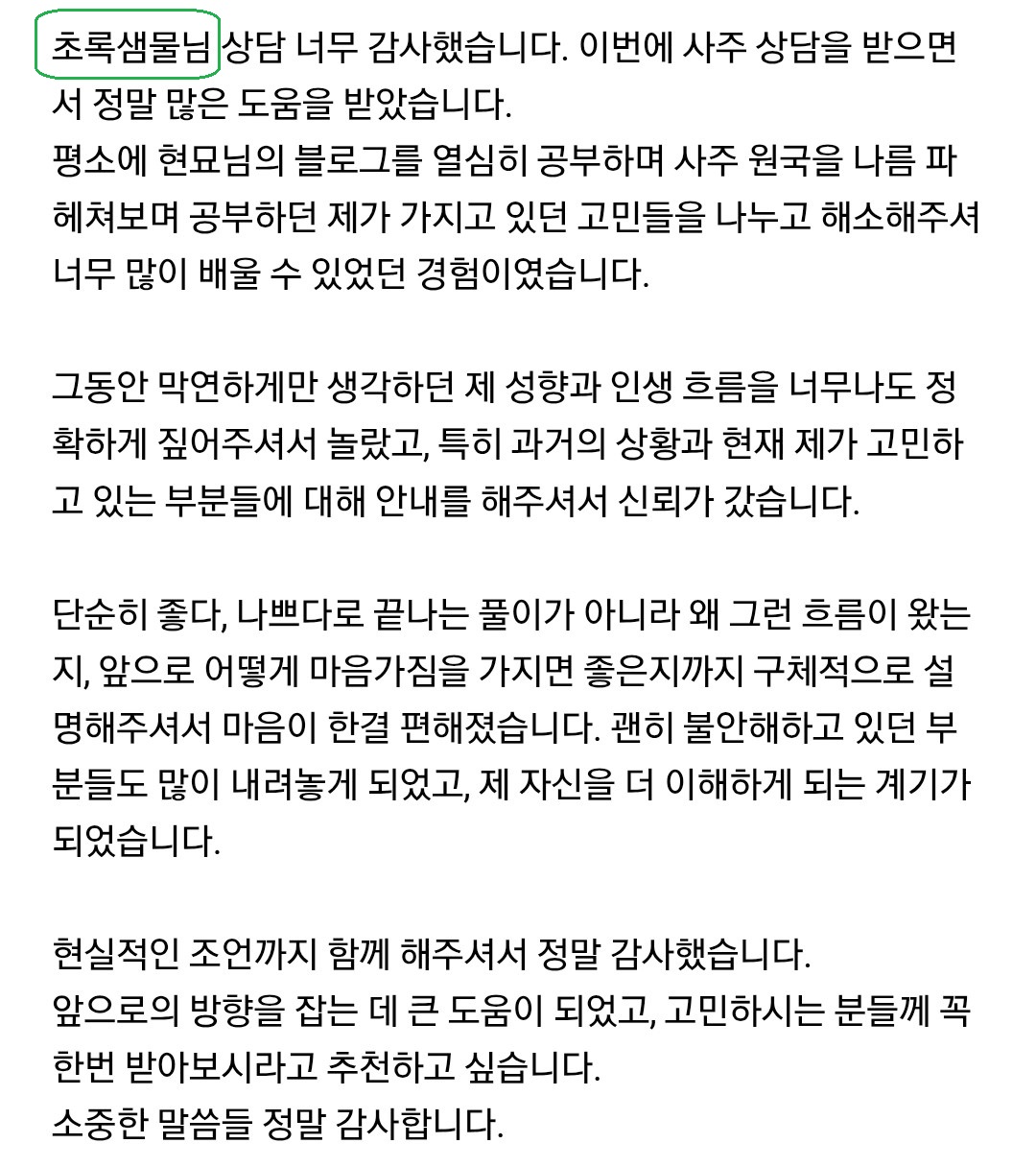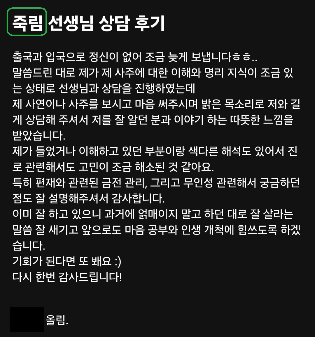 안녕 사주명리 1월 무료 상담 후기