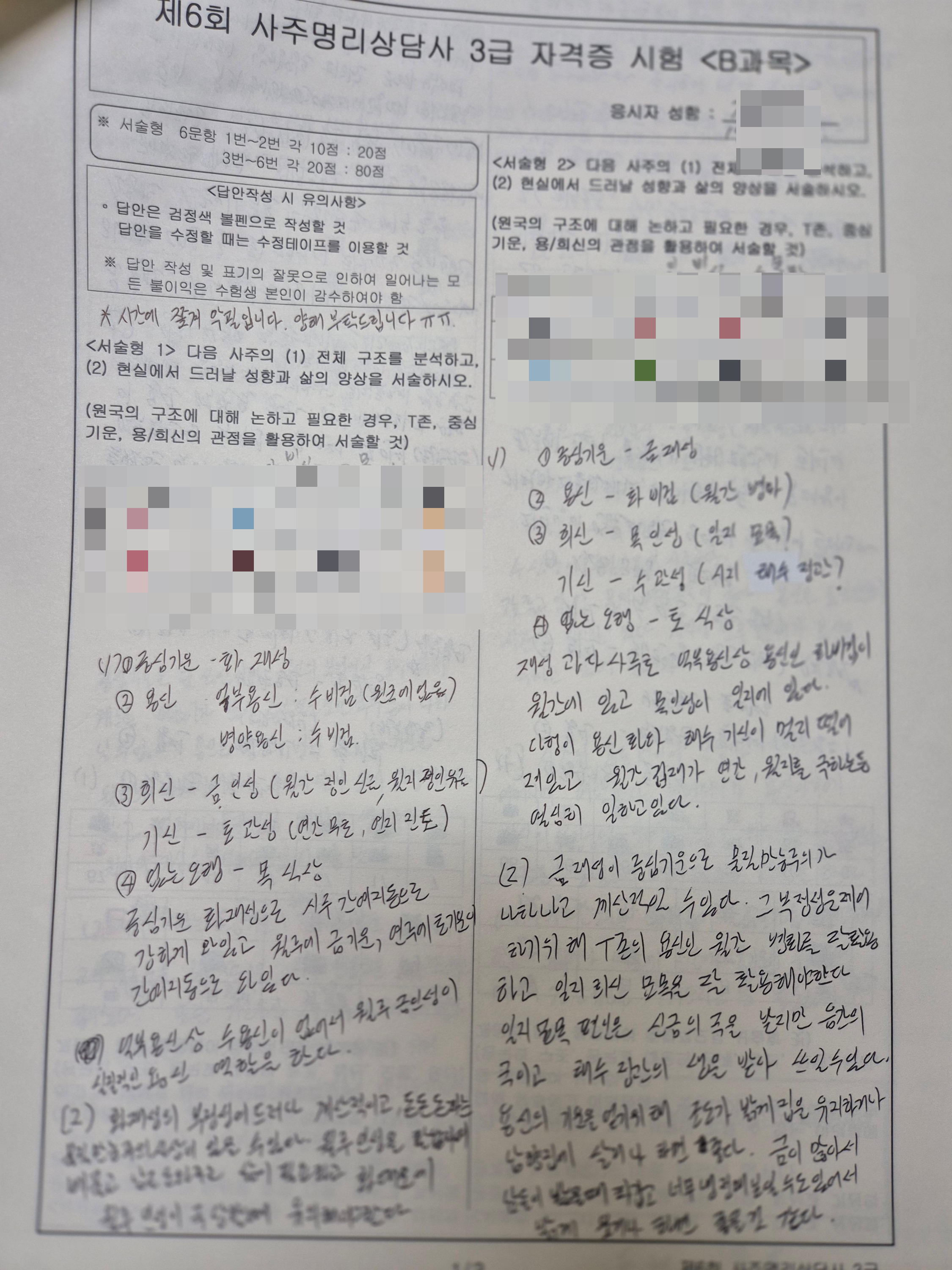 지난 1월 31일 토요일에 제6회 사주명리상담사 3급 자격증 시험이 시행되었습니다.