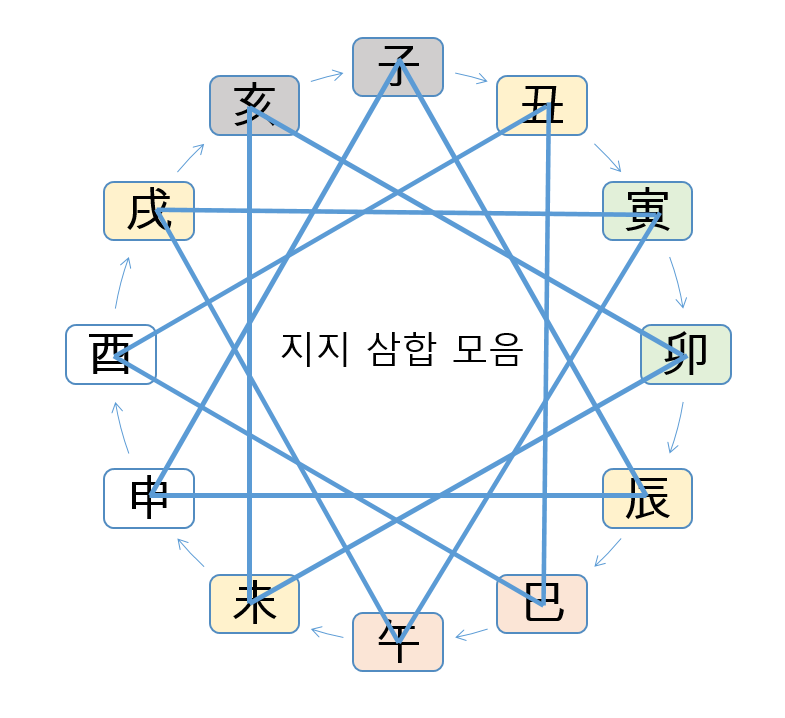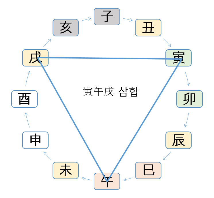 삼합을 제대로 이해해야 하는 이유가 여기에 있습니다. 삼합의 개념, 생지 왕지 고지에 대한 개념, 생지가 계절을 여는 역할을 한다는 이해가 있어야 도화의 기운을 제대로 해석할 수 있습니다.
