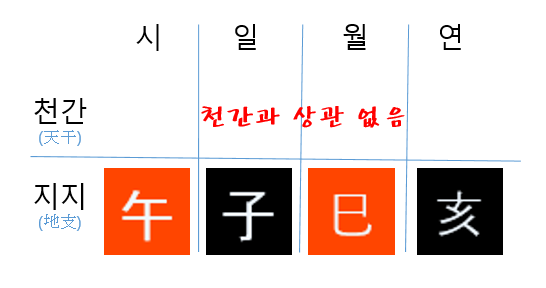 도화살은 자오묘유(子午卯酉)의 기운입니다. 즉 지지에만 해당하는 신살로서, 천간은 고려하지 않고 지지만 고려합니다.