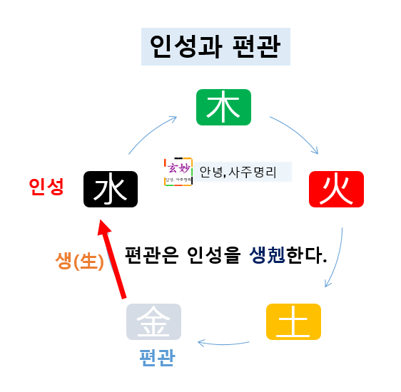 편관을 무력으로 보고 인성을 도덕적 가치로 보았을 때 편관이 인성을 생한다는 이야기는 무력의 아픔을 겪거나 무력을 휘두른 사람은 결국 인생의 이치를 깨닫는 것으로 해석할 수 있습니다.