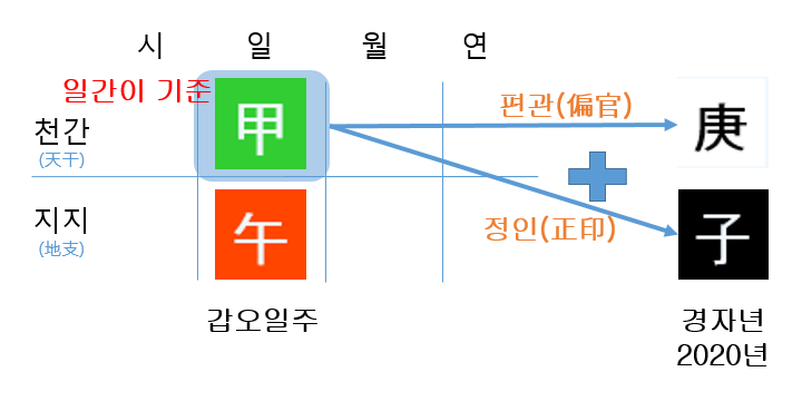 2. 십신으로 보는 경자년(2020년) 갑오일주 운세