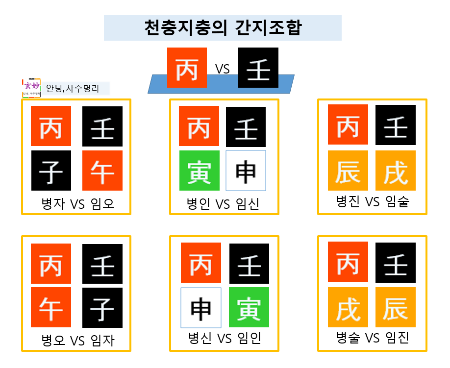 그렇다면 구체적으로 천충지충에 해당하는 간지조합을 살펴보도록 하겠습니다.