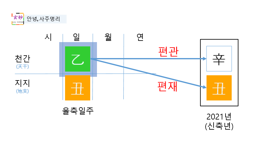 2. 십신으로 보는 신축년(2021년) 을축일주 운세