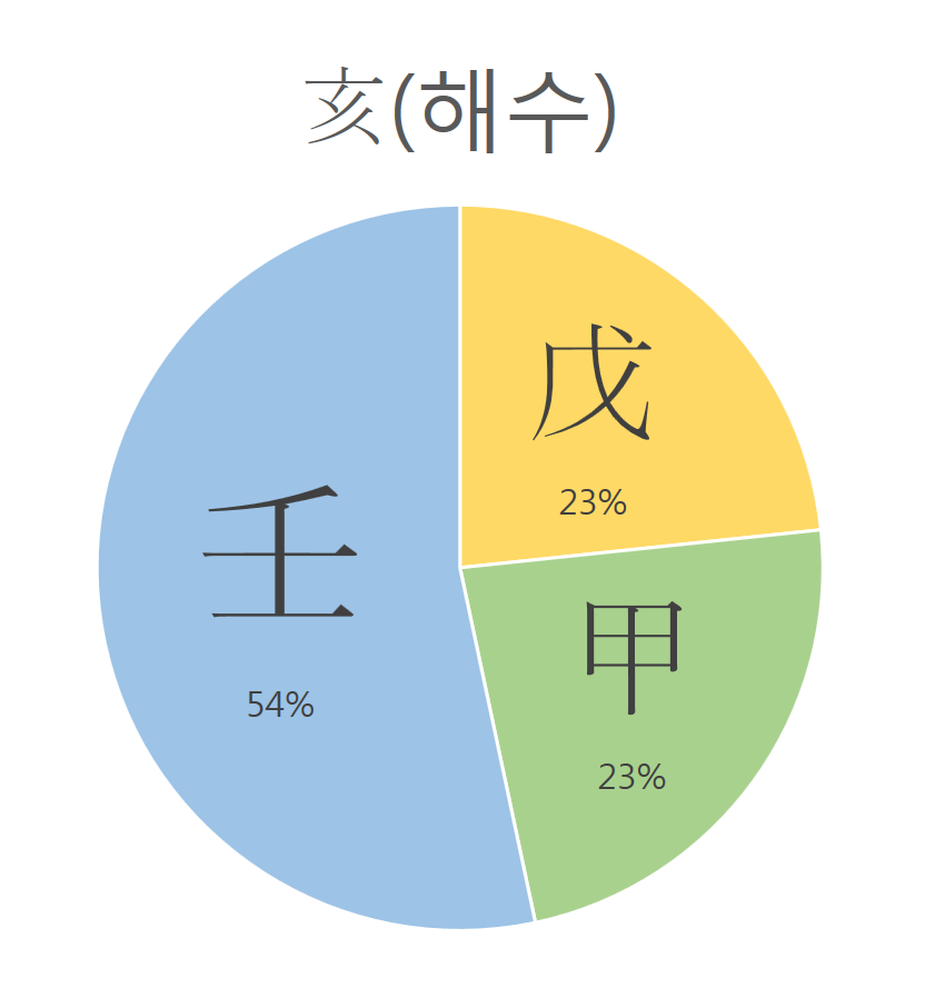 亥(해수)의 지장간은 戊(무토), 甲(갑목), 壬(임수)로 구성되어 있습니다.