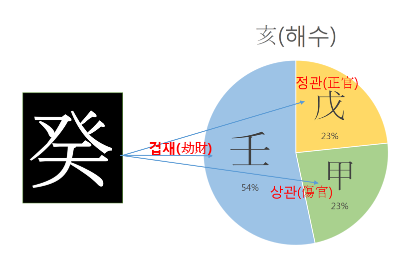 기준이 癸(계수)입니다. 癸(계수)를 기준으로 亥(해수)와의 관계를 판단합니다.